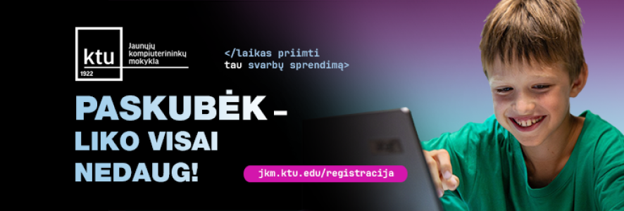 KTU JKM – čia esame nuo pradžios ir būsime iki galo su abiem sūnumis, kurių vienas šiuo metu tvirtina žinias paskutiniajame savo VBE kurse. Na o antras- čia jau gal septinti metai – C++ pažengusiųjų kursą baigia.