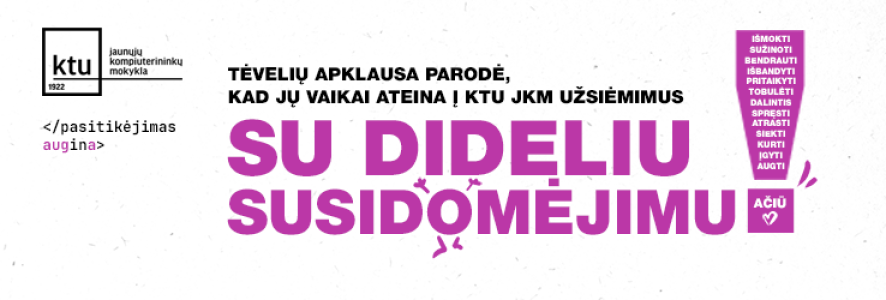 KTU JKM – čia esame nuo pradžios ir būsime iki galo su abiem sūnumis, kurių vienas šiuo metu tvirtina žinias paskutiniajame savo VBE kurse. Na o antras- čia jau gal septinti metai – C++ pažengusiųjų kursą baigia.